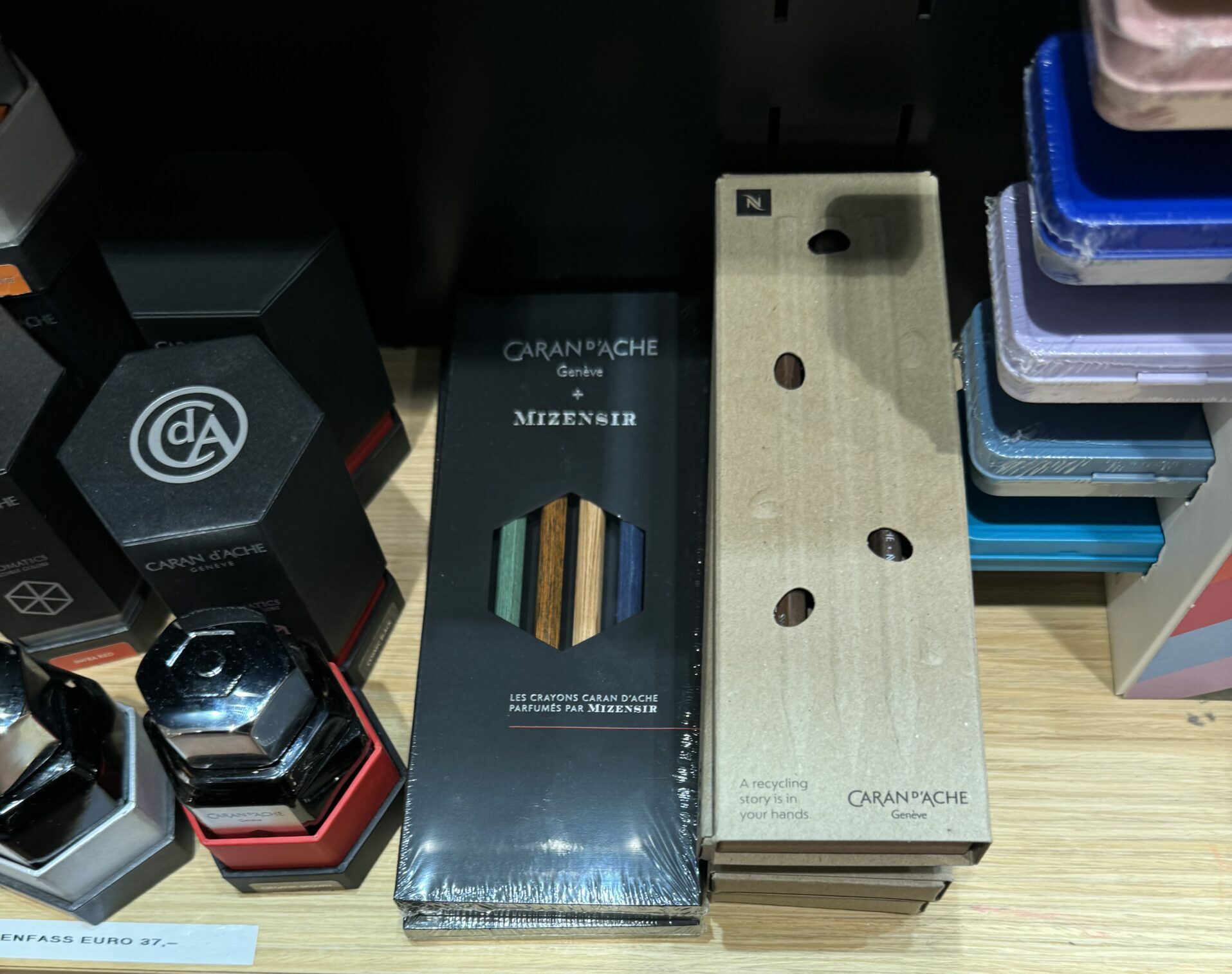 Thanks to my wife I walked away with Caran d’Ache’s Nespresso pencils (more about them at Pencil Talk) and my first ever “Les crayons de la maison” pencils (more about them at Lexikaliker, who discovered that this series is not quite what it is made out to be).